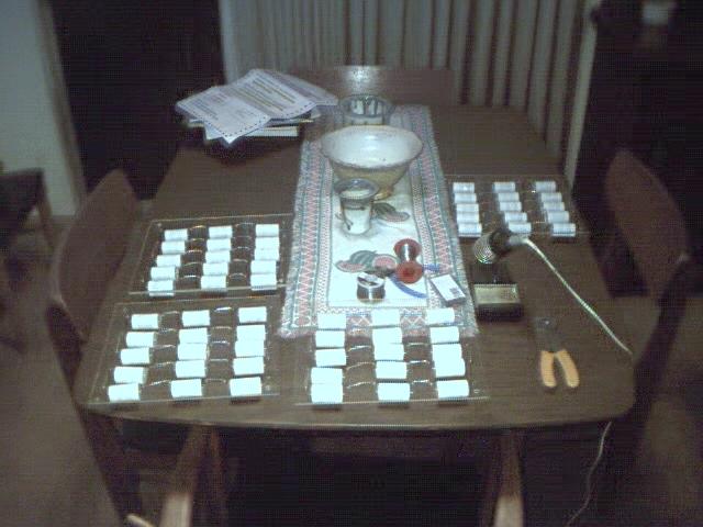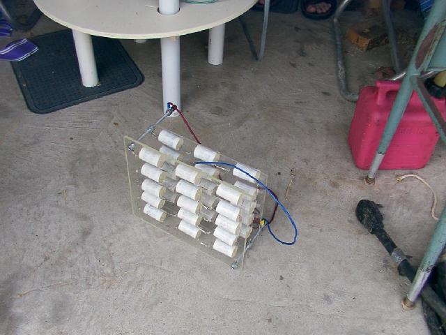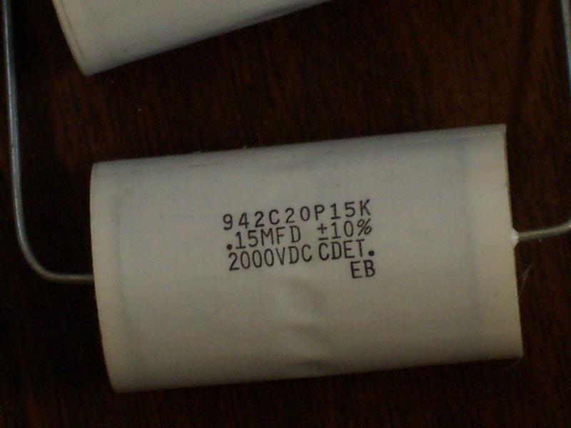 This is my MMC (Multiple Miniature Capacitor) array. The array is made up of 60 capacitors made by CDE(Cornell Dubilier), with each capacitor rated at .15 uF @ 2kVDC. Their part number is 942C20P15K.